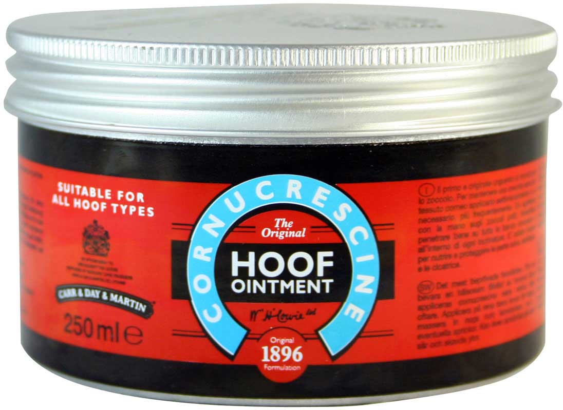 El primer ungüento para cascos de caballos del mundo, Cornucrescine Original Hoof Ointment, es una fórmula única diseñada para promover y acelerar el crecimiento de los cascos. Ideal para aplicar en cascos blandos y quebradizos, así como en cascos secos, quebradizos, agrietados o partidos, ayuda a mantenerlos en óptimas condiciones. También ayuda a reestructurar y hacer crecer el casco, y favorece la regeneración del pelo cerca del casco después de rozaduras o cicatrices. Su aplicación manual estimula las células productoras de queratina, lo que permite ver resultados en tan solo 4 a 6 semanas. (Es posible que deba programar visitas al herrador con mayor frecuencia).